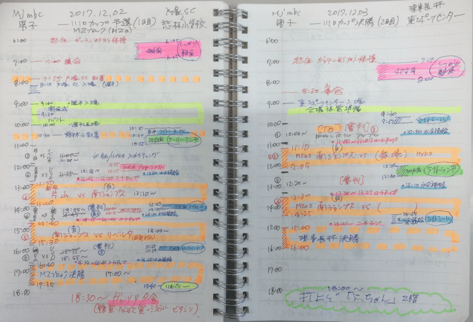 U12チームの『試合当日の食事調整』スケジュール